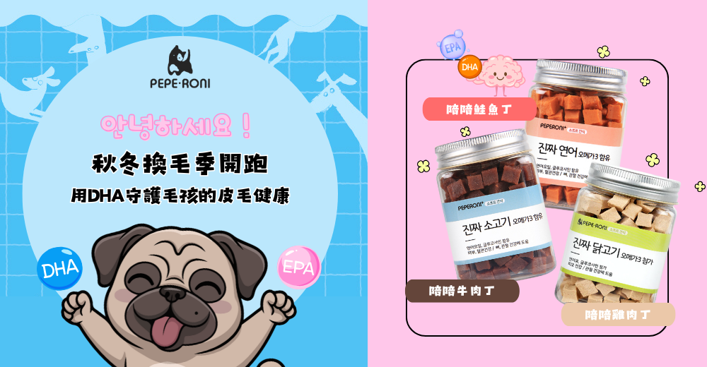 換毛是自然現象,但透過營養與日常照顧,我們能讓這段時期變得更舒適。Peperoni 相信:每一次輕聲稱讚、每一顆小肉丁,都是在和毛孩說「你被好好照顧著」。一起用 DHA 從內到外地守護,迎接閃亮又柔軟的冬日新毛吧。